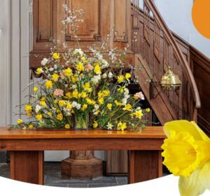 Onze werkgroep Symbolisch bloemschikken zorgt in de aanloop naar Pasen voor een toepasselijk bloemstuk. Lees: Symbolische schikkingen in de 40-dagentijd.