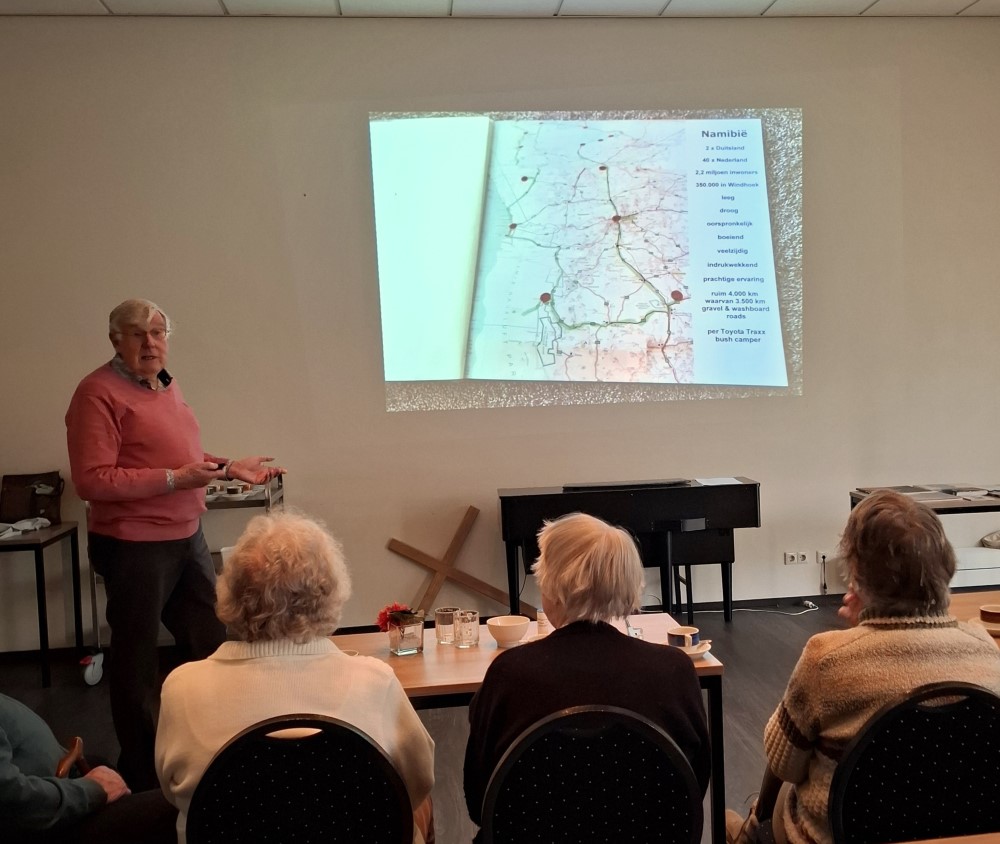 Velen waren gekomen om te luisteren naar de verhalen en te kijken naar de beelden van de reis van Peter en Jeannette van der Heij door Namibië in 2013.