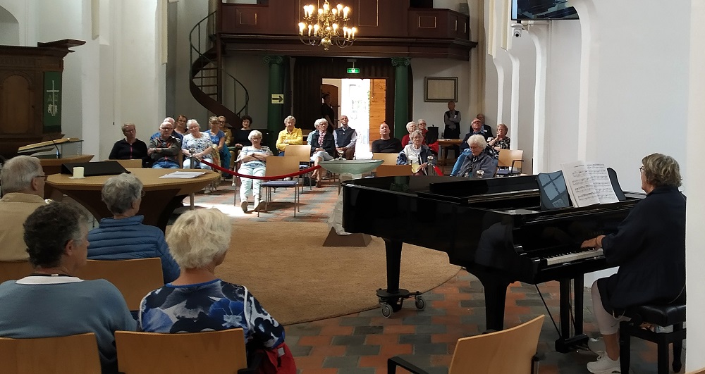 Marty Herlaar begeleidt de zang van Gerrie op de prachtige Yamaha vleugel in de Dorpskerk. Samen laten zij muziek niet alleen horen, maar ook voelen.